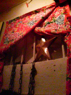 レトロなファブリックに木製の★に鎖が施されている。